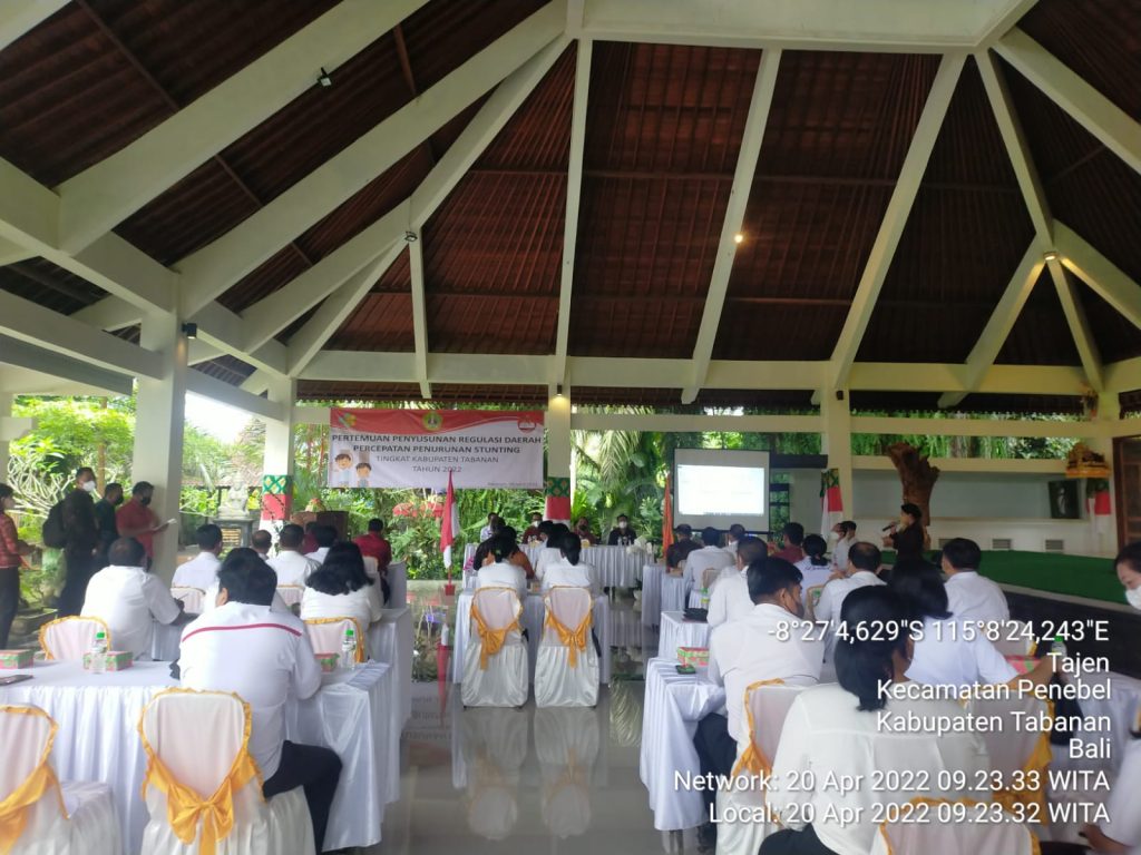 Dalam rangka percepatan penurunan stunting di Kabupaten Tabanan, sesuai dengan amanat Perpres No 72 Tahun 2021 tentang Percepatan Penurunan Stunting, Pemkab Tabanan melaksanakan pertemuan Penyusunan Regulasi Daerah terkait Stunting di Kabupaten Tabanan