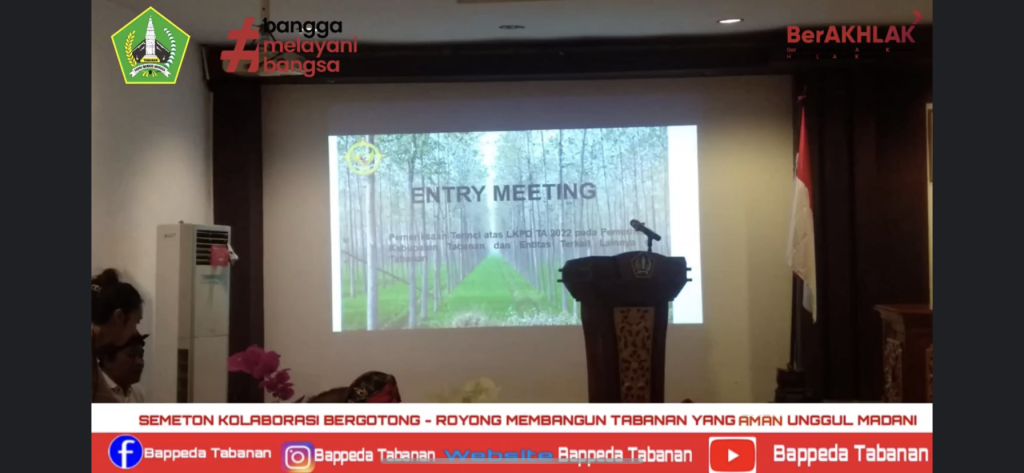 Kamis 16 Maret 2023 Bappeda Tabanan yang di wakili oleh Bidang Ekonomi Menghadiri Entry Meeting BPK RI Perwakilan Provinsi Bali berlangsung di Ruang rapat Lantai 3 Kantor Bupati Tabanan.