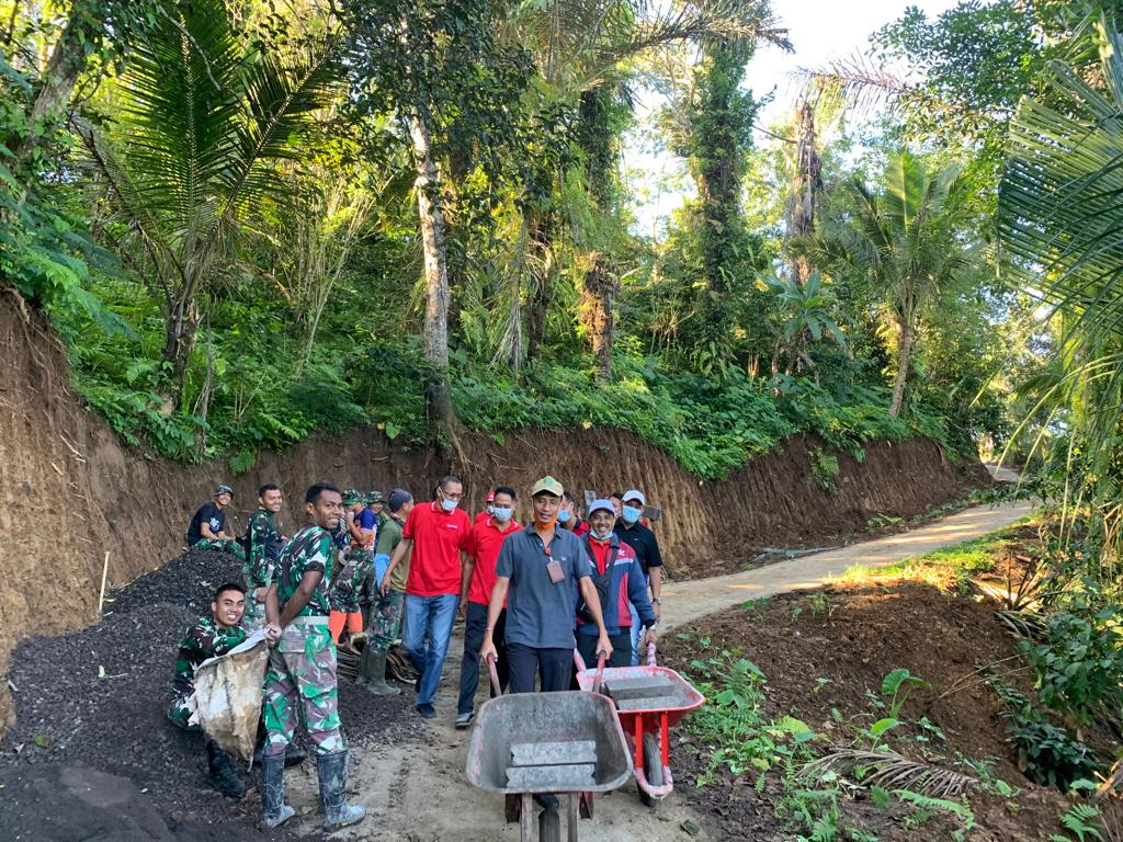 Kerja bakti dalam rangka mensukseskan kegiatan Tentara Manunggal Membangun Desa (TMMD) ke-114 tahun 2022
