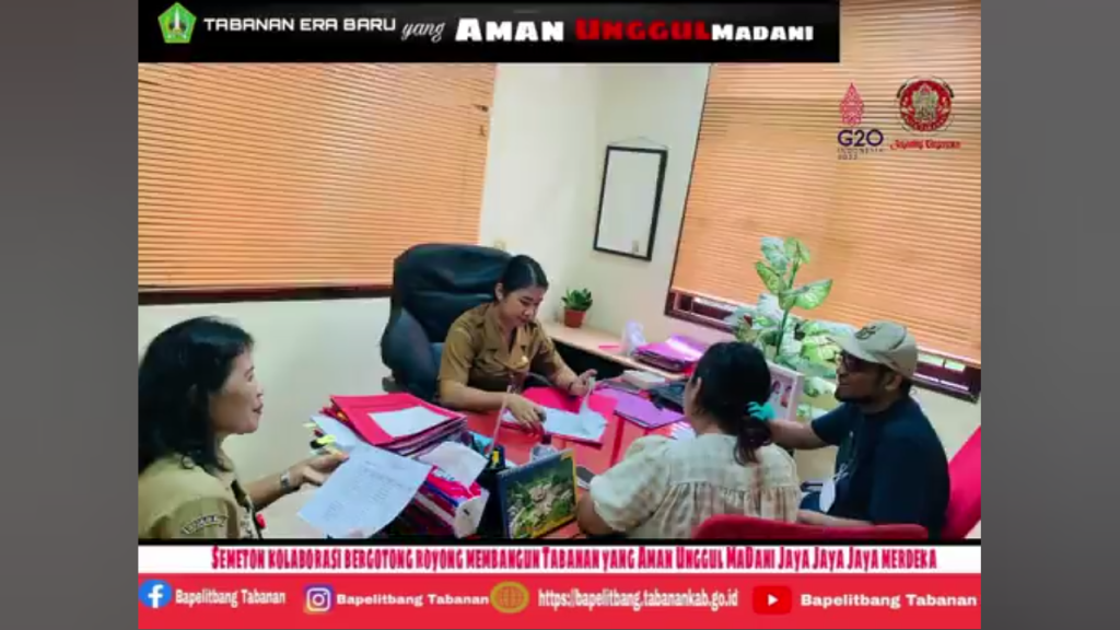 Senin 14 Nopember 2022 Bapelitbang Tabanan yang diwakili Kabid Ekonomi dan SDA bersama Sekretaris Badan Melaksanakan Koordinasi NSLIC terkait Monitoring Tebe Modern yang bertempat di Kantor Bapelitbang Tabanan.