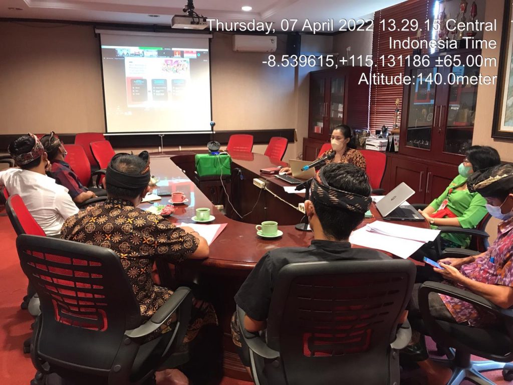Mengikuti Undangan Desk Pembahasan dan Penutupan Musrenbang dalam rangka Penyusunan RKPD Semesta Berencana Provinsi Bali Tahun 2023 melalui media Zoom Meeting pada hari Kamis, 7 April 2022
