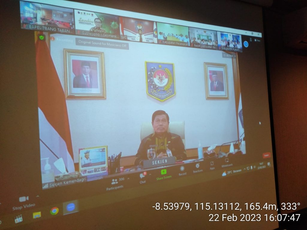 Rabu,22 Februari 2023 Bappeda Tabanan Menghadiri Undangan Kegiatan Launching Pemberian Penghargaan Pengendalian Covid – 19 (PPKM Award) dengan Kategori Pemda, Faskes, TNI dan Polri secara Daring