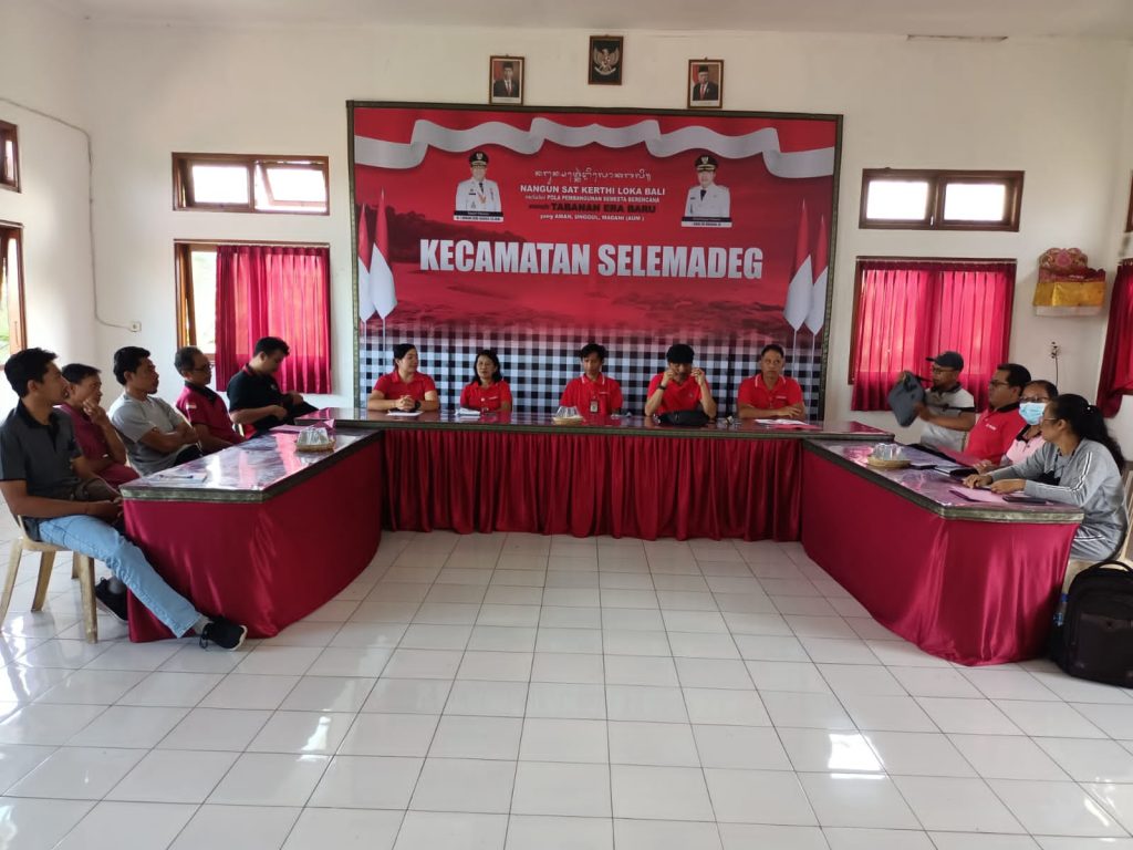 Pelaksanaan Pendampingan Teknis Verifikasi dan Validasi Data P3KE oleh Tim Koordinasi Penanggulangan Kemiskinan Daerah di Kecamatan Selemadeg Hari/tgl : Jumat , 11 Nopember 2022 yang dihadiri oleh Kasi Kesra masing- masing desa Se Kecamatan Selemadeg bertempat di Ruang Rapat Kantor Camat Selemadeg.
