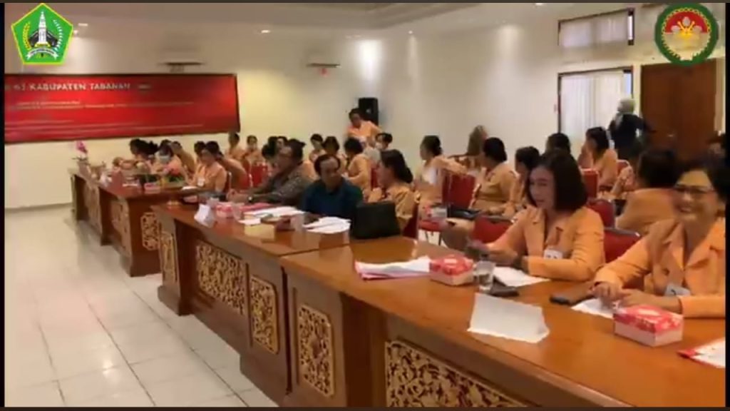 Ibu Dharma Wanita Kepala Bapelitbang Tabanan Mengikuti Lomba Membaca Sambutan Dalam Rangka Peringatan Hut Dharma Wanita Persatuan Ke-23 Kabupaten Tabanan Dengan Tema Membangun Perempuan Cerdas untuk Memperkuat Ketahanan Keluarga di Era Digital.