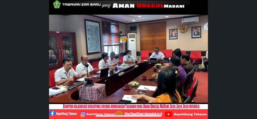 Rabu 21 Desember 2022 Tim Fasilitasi Penyusunan dan Penilaian Perjanjian Kinerja Perangkat Daerah di Lingkungan Pemerintah Kabupaten Tabanan Melaksanakan Rapat dengan Tim Universitas Mahasaraswati Denpasar Terkait Evaluasi Kinerja Tahun 2022 yang bertempat di Ruang Rapat Bapelitbang Kabupaten Tabanan.