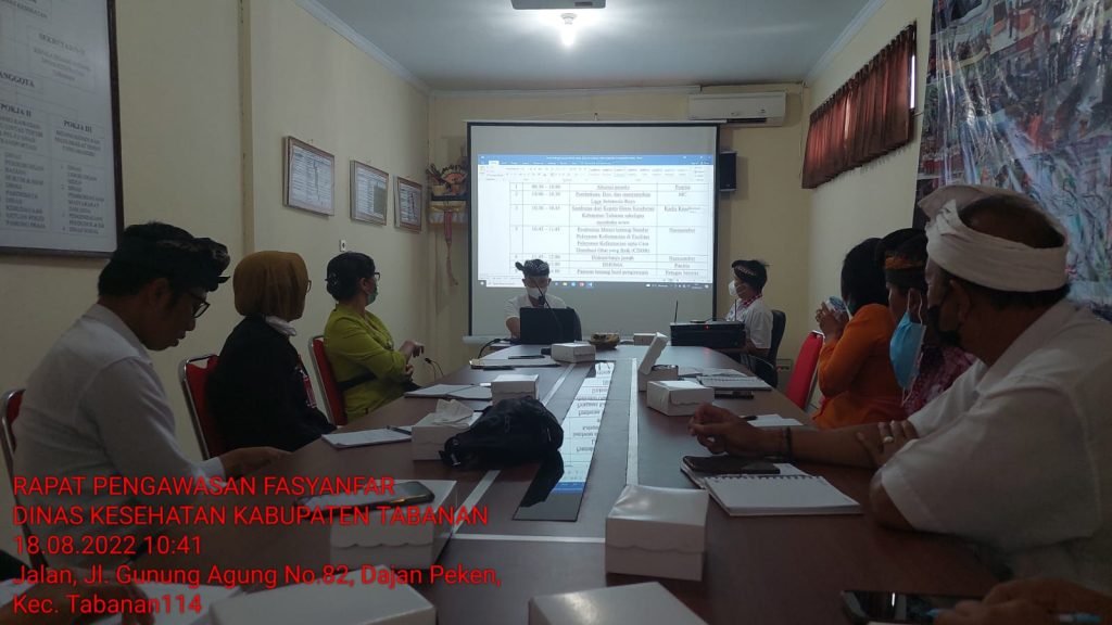 Rapat monitoring pembinaan pengawasan fasilitas pelayanan kefarmasian yang diselenggarakan oleh Dinas Kesehatan Kabupaten Tabanan sebagai berikut :