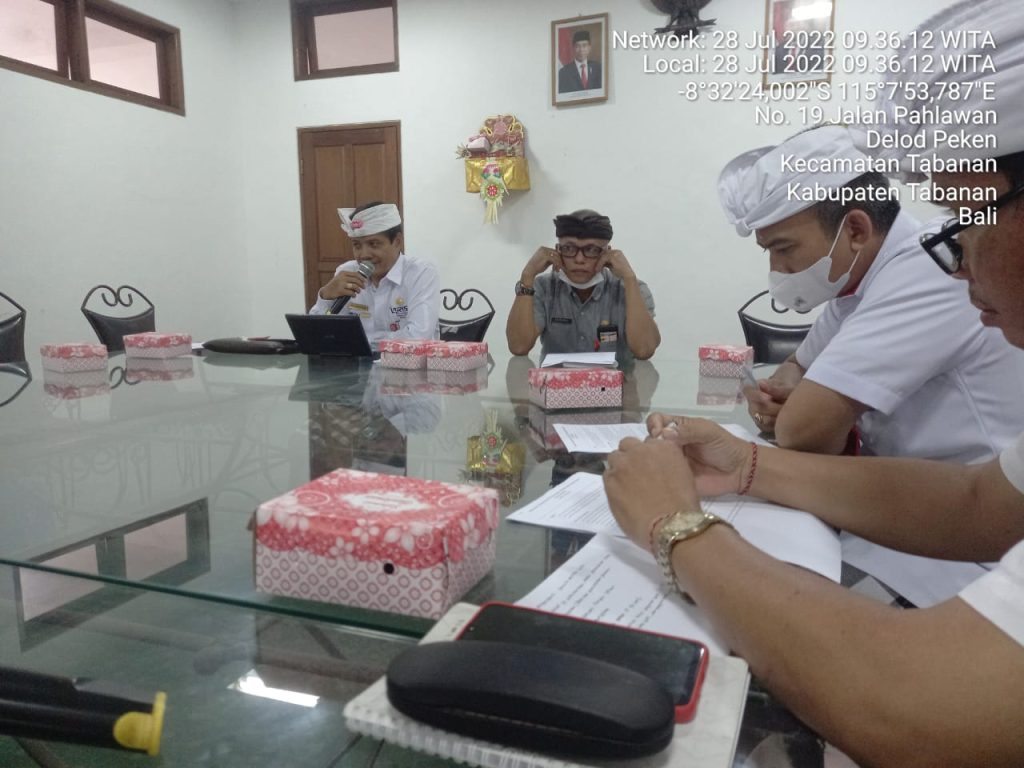 Kamis,28 juli 2022 Bapelitbang Tabanan menghadiri Rapat Pembahasan Permohonan akses jalan di areal Perumahan Dinas Nayaka Praja Wanasara yang akan digunakan sebagai akses pengembangan Perumahan..Rapat dipimpin oleh Asisten Pemerintahan dihadiri oleh Dinas PUPRPKP, Bakeuda, Bapelitbang, Bagian Tata Pemerintahan Bagian Hukum, serta Kelompok Ahli Bupati..Dalam pembahasan diharapkan tim terkait untuk mengkaji ulang terkait kelengkapan dokumen serta legalitas pendukung terkait permohonan penggunaan akses jalan dimaksud serta rencana pengembangan perumahan..