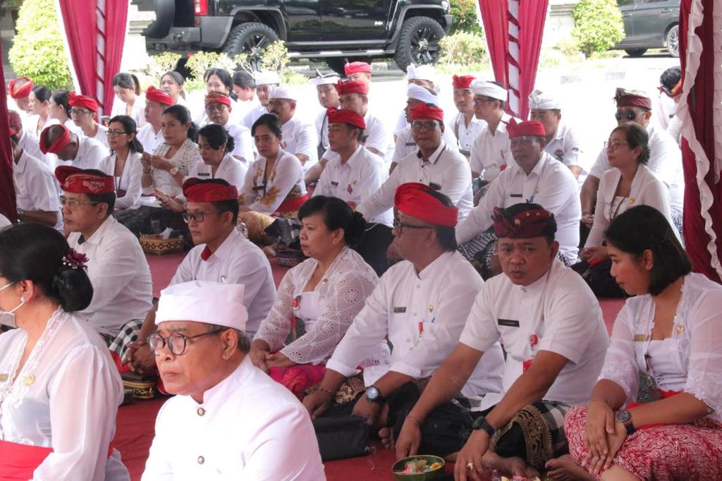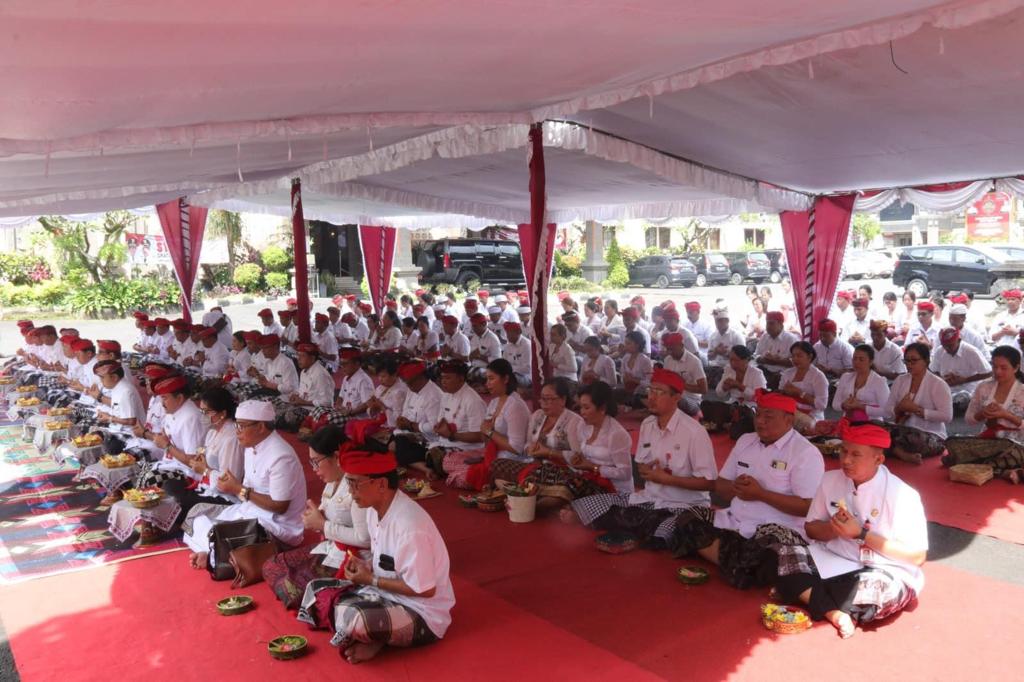 Sembahyang bersama dalam rangka hari purnama kedasa dan piodalan di padmasana kantor Bupati Tabanan