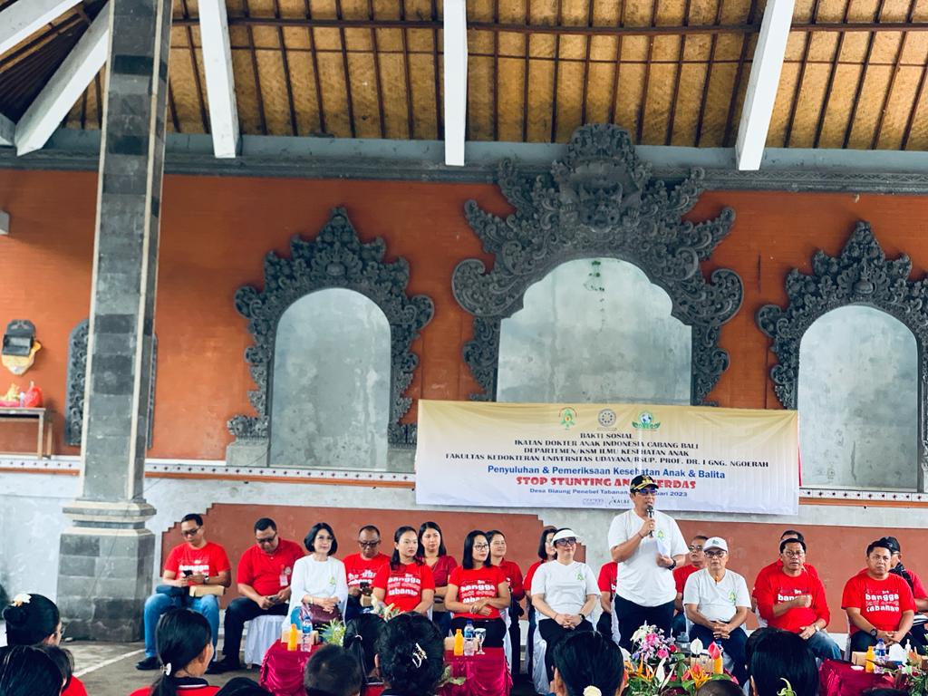 Sabtu 25 Pebruari 2023 Sekretaris Bappeda Mendampingi Pimpinan Menghadiri Undangan Penyuluhan kepada Kader Posyandu dan Anak – Anak SD serta Pemeriksaan Kesehatan kepada Balita oleh Ikatan Dokter Anak Indonesia Cab. Bali yang bertempat di Balai Desa Biaung, Kec. Penebel Tabanan.
