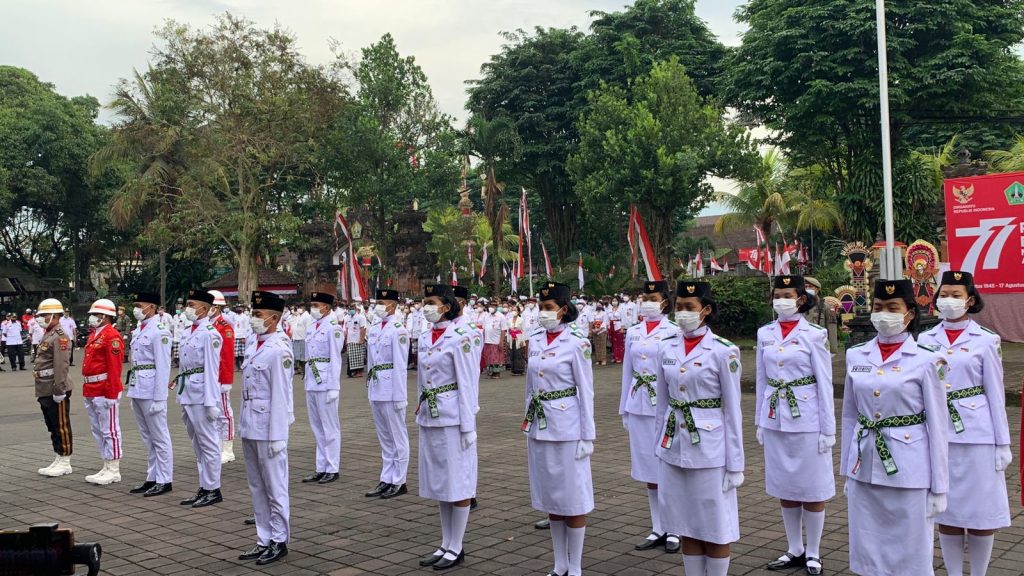 Upacara Dalam Peringatan Hari Jadi Provinsi Bali ke – 64 di Halaman Depan Kantor Bupati Tabanan